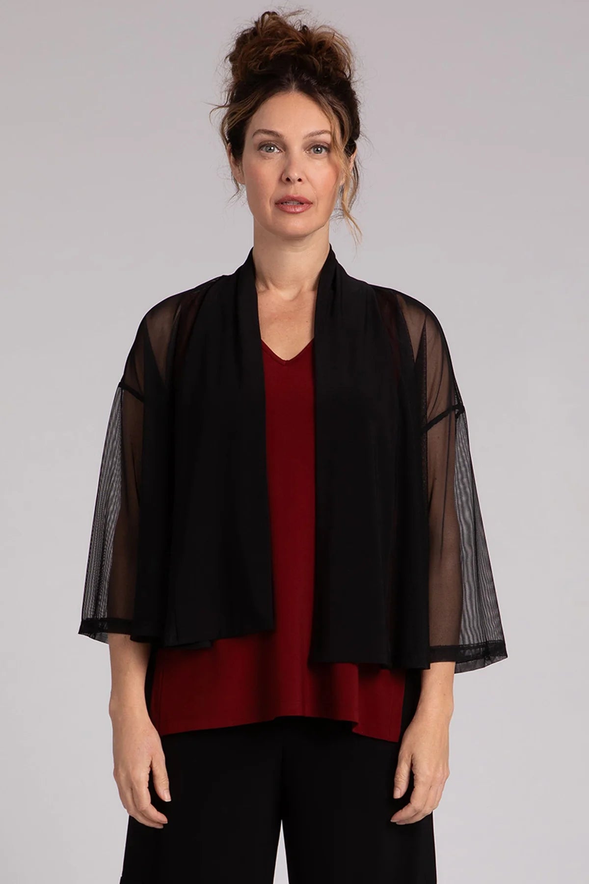 The Mesh Mezza Luna Cardigan, crafted from our beloved mesh fabric, features a front lapel elegantly finished with colour-coordinated jersey fabric. This versatile piece serves as a statement item, perfect for layering over a dress or pairing with our Rapt Pants and a top for a chic, sophisticated look.
