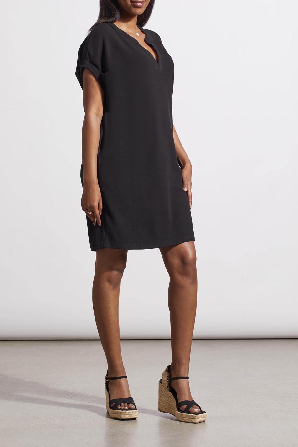 Styled with an airy fit and textured knit fabric, this shift dress is a comfy choice that's still endlessly chic. A notch neckline, short sleeve design, side seam pockets, and a hem that hits above the knees complete the look.