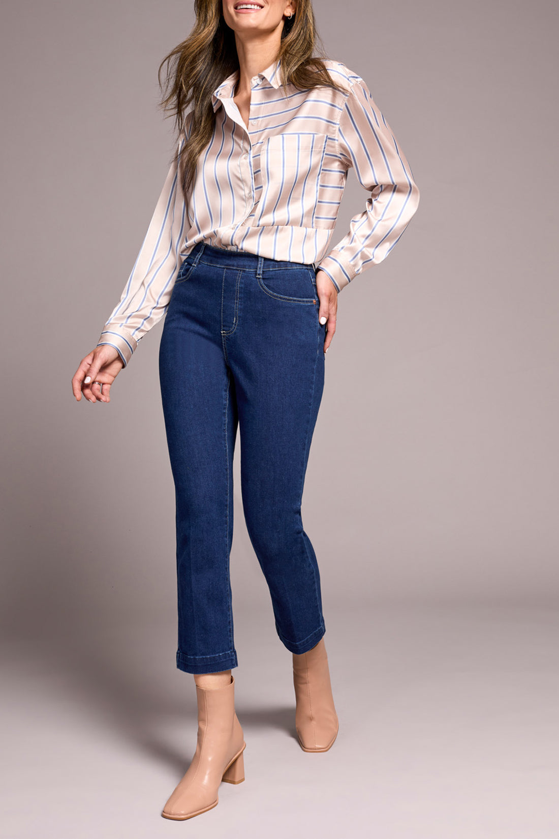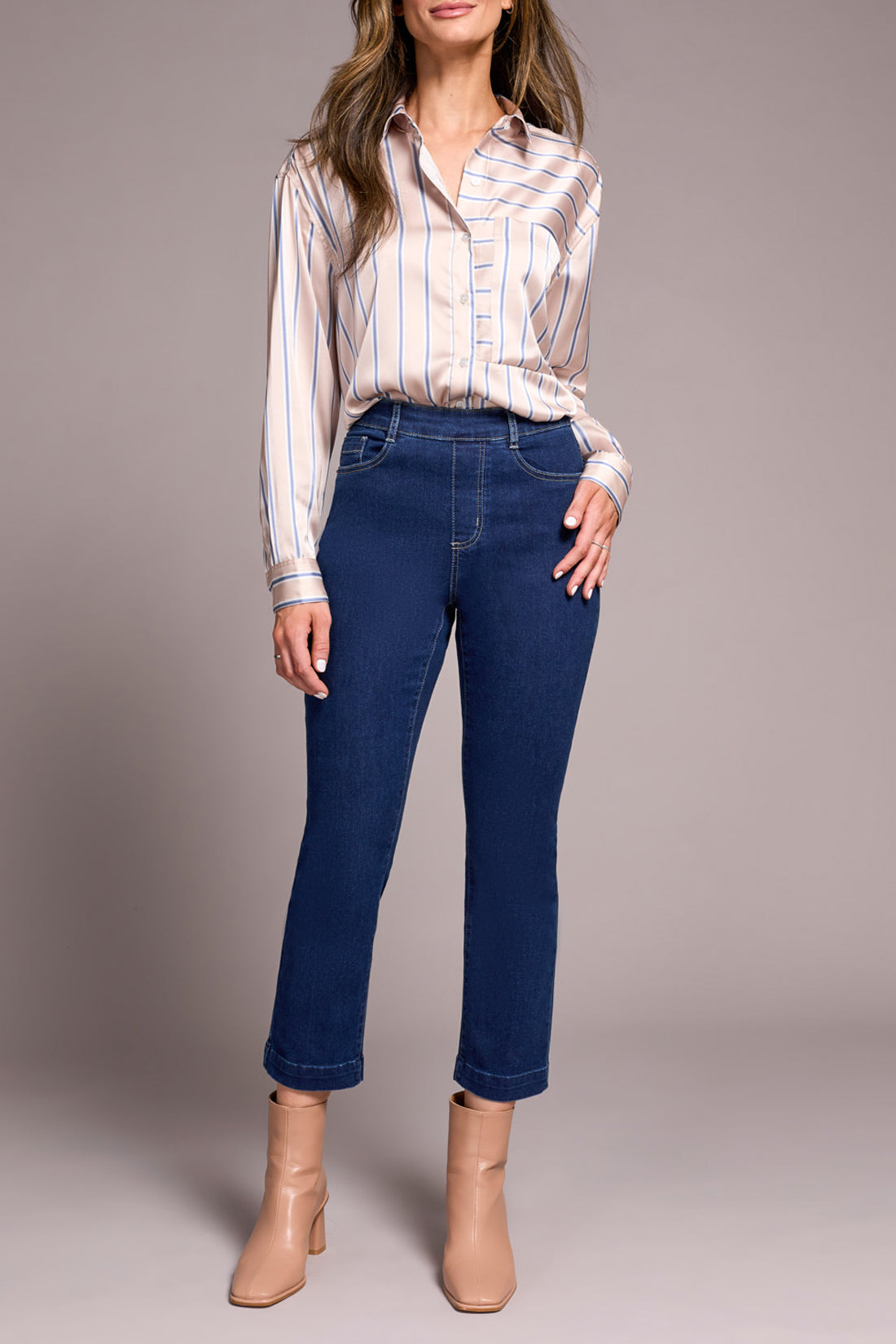 Tribal Audrey Pull On Crop Jeans W/ Front Crease