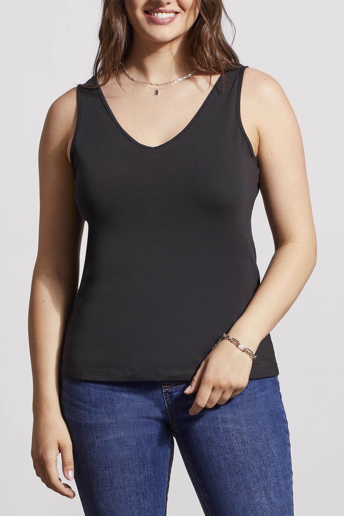 Say hello to the ultimate layering piece. This cami is a wardrobe essential with a versatile design that lets you wear it two ways. It flaunts 1.5" straps that give stylish support, a stretch binding finish, and cotton jersey fabric that contours your shape without constricting.