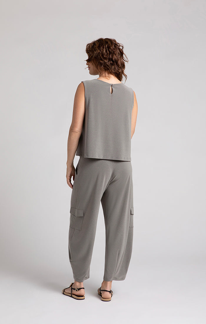 Refine your look with our chic Flared Shell, featuring a flattering boat neckline, relaxed, boxy fit, and the added comfort of being double-lined in the front and back. Effortlessly stylish, this tank pairs seamlessly with wide leg pants for a casual sophisticated ensemble. Embrace comfort and fashion with this wardrobe essential.