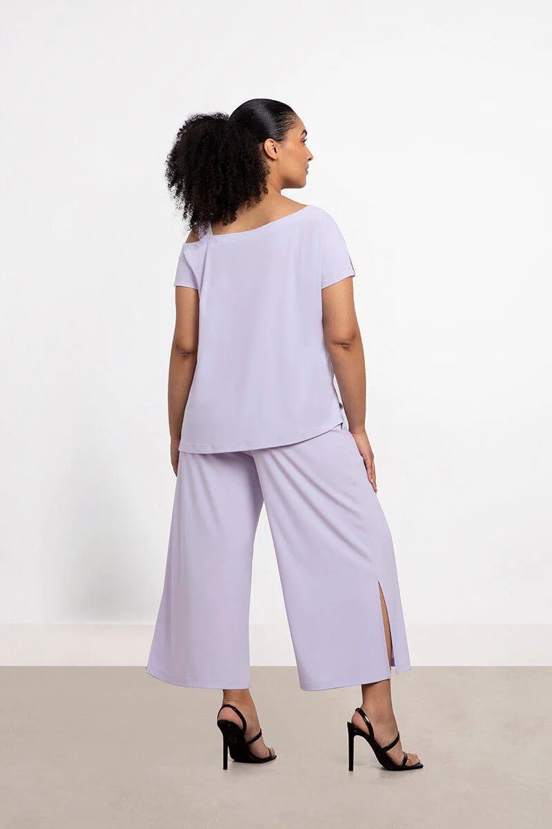- Features shoulder cut-out on one side and a split sleeve on the other.