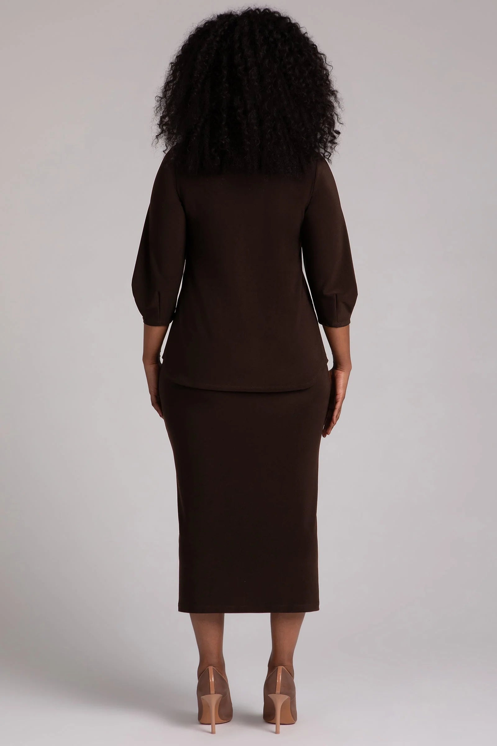 This top epitomizes sophistication with its elegant 3/4 length lantern sleeves. The whimsical lantern sleeves add a touch of charm, making it perfect for any occasion and a versatile addition to your wardrobe.