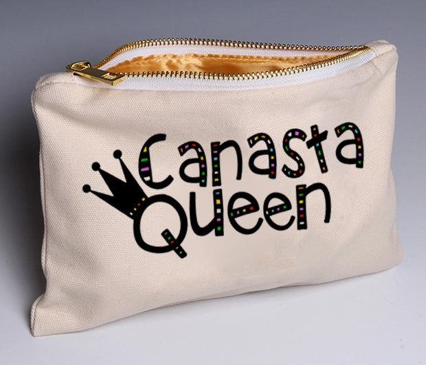 Who doesn't love Canasta? A FUNctional gift, this cotton pouch is just perfect for cosmetics, change, car keys, odds and ends & all your stuff... Large pouch is lined and measures 9" x 6". Image is printed on one side.