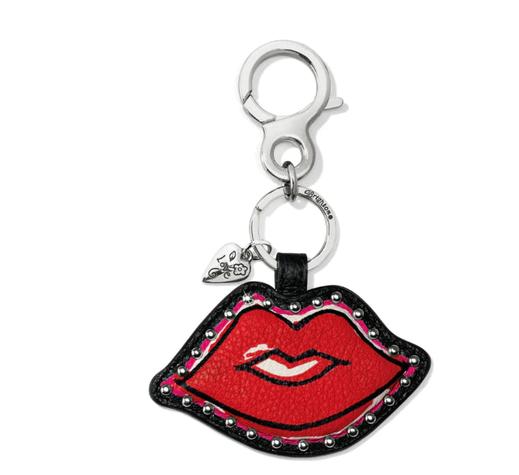 This studded leather handbag hook featuring artwork from designer Tom Clancy adds a touch of fun romance and color to your look!