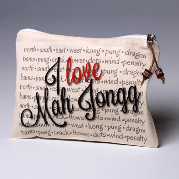 Who doesn't love Mah Jongg? A FUNctional gift, this cotton pouch is just perfect for cosmetics, change, car keys, odds and ends & all your stuff.. 9" x 6