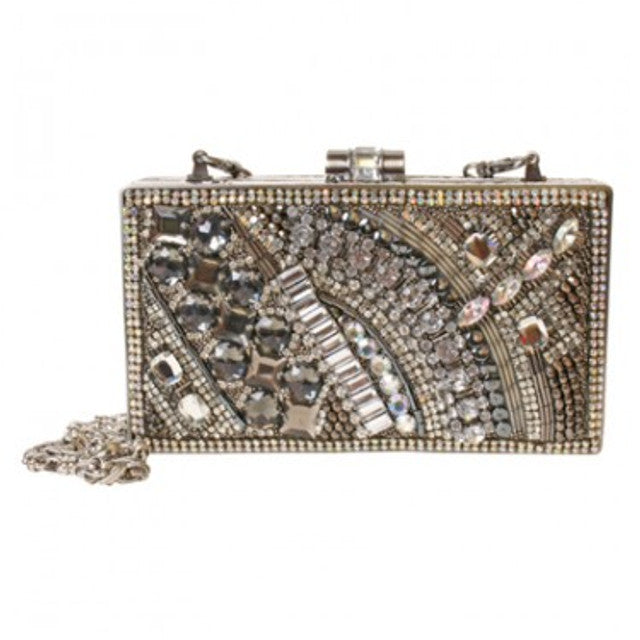 Get ready for the paparazzi when you hit the red carpet with this bag because you're sure to feel like a Movie Star! Encrusted in rhinestones and crystals this convertible clutch is definitely the most bling for your buck. Quite the head turner as well, the back is not to be missed - a shiny silver faux snake skin. This bag is the perfect accessory for that little black dress or really any outfit at all; dress up a pair of jeans even. Don't miss out on your chance to be a Movie Star!