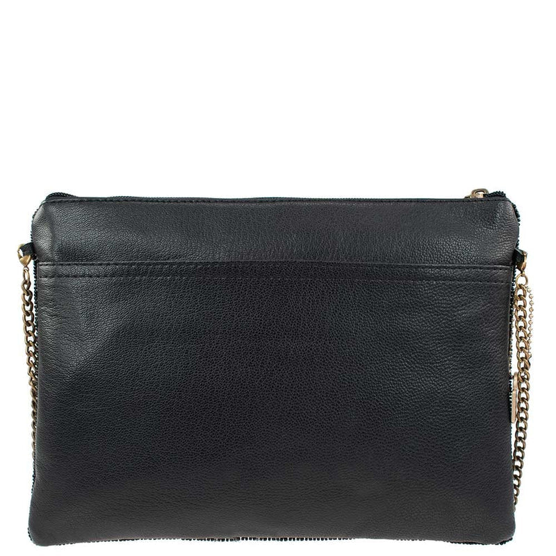 Face the music with this rhythm and blues-inspired black crossbody clutch. A quintessential iconic beauty that exhibits the artistic craftsmanship of the embellished hand-stitched beads. Whether your tempo is upbeat or laid back, this clutch is sure to bring you harmony.