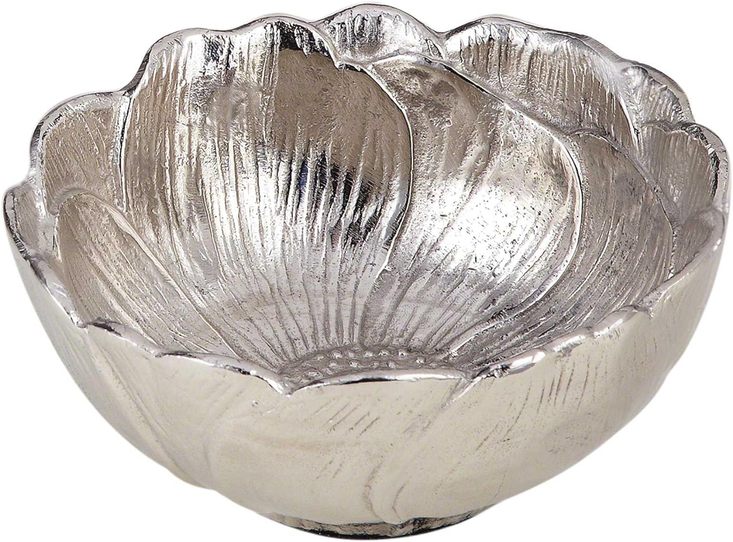 The 4.5-Inch Lotus Bowl in silver is versatile, suitable for preparing salads, serving various dishes, and displaying fruits. Crafted predominantly from lightweight aluminum, it possesses excellent heat resistance. The material not only makes the bowl light but also facilitates easy cleaning, ensuring a convenient and practical kitchen accessory.