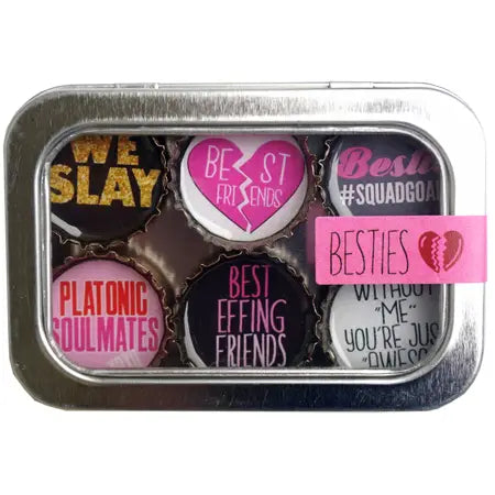 Upcycled, adorable, and eco-friendly! 🌎 These handmade magnets are crafted from recycled bottle caps and topped with a glossy, eco-conscious epoxy finish. Each themed six-pack comes in a stylish display tin—strong enough to stick to any magnetic surface! Perfect for kitchens, offices, and gift-giving. Made in the USA.