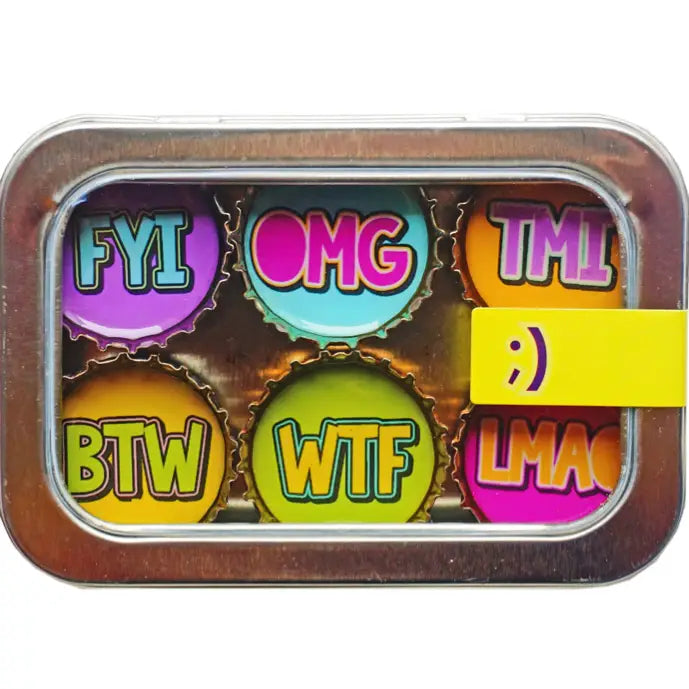 Upcycled, adorable, and eco-friendly! 🌎 These handmade magnets are crafted from recycled bottle caps and topped with a glossy, eco-conscious epoxy finish. Each themed six-pack comes in a stylish display tin—strong enough to stick to any magnetic surface! Perfect for kitchens, offices, and gift-giving. Made in the USA.