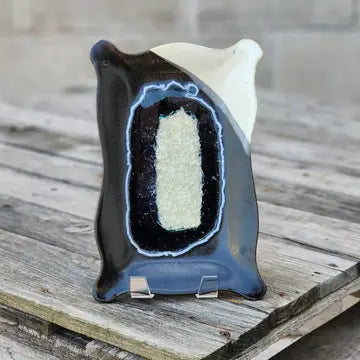 This charming handmade small tray is perfect for serving or as a decorative accent. Crafted from stoneware ceramic clay and featuring our signature Geode-style crackle fused glass, each tray is unique. Measuring approximately 10" long, 7" wide, and 1.5" tall, slight variations in size and glaze are a natural result of the handmade process.