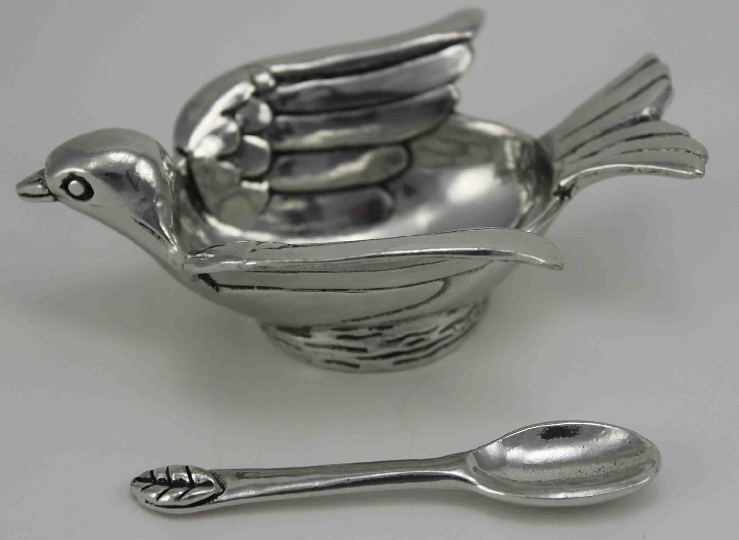 Pewter Bird Salt Cellar W/ Spoon