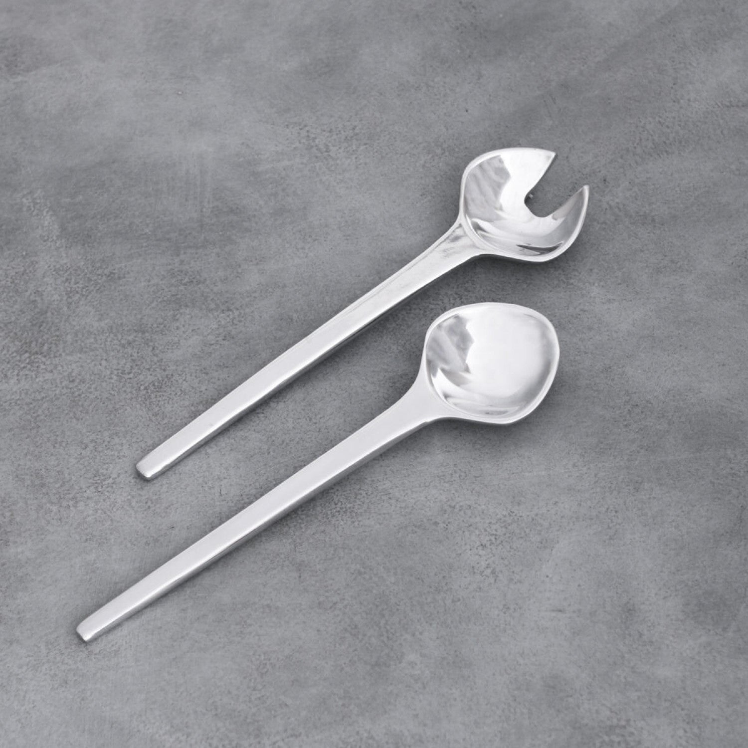 Mid-Century modern is red hot trend for home décor and tableware, and Beatriz Ball’s new MID-CENTURY Collection (dubbed "Millennial Modern"), includes sleek, and practical metal serving pieces reminiscent of the best of Danish Modern design, but utilizing practical materials for the ease of today’s lifestyles. "Millennial Modern" that's ideal for daily use. Sleekly sophisticated, our versatile MID-CENTURY Large Salad Servers are simple yet elegant. With gently tapered handles and a smooth fork and spoon, these servers coordinate with any salad bowl. A stunning gift, you'll want to use these every day. Made of a top quality, FDA safe, easy-care, oven and freezer friendly aluminum alloy.