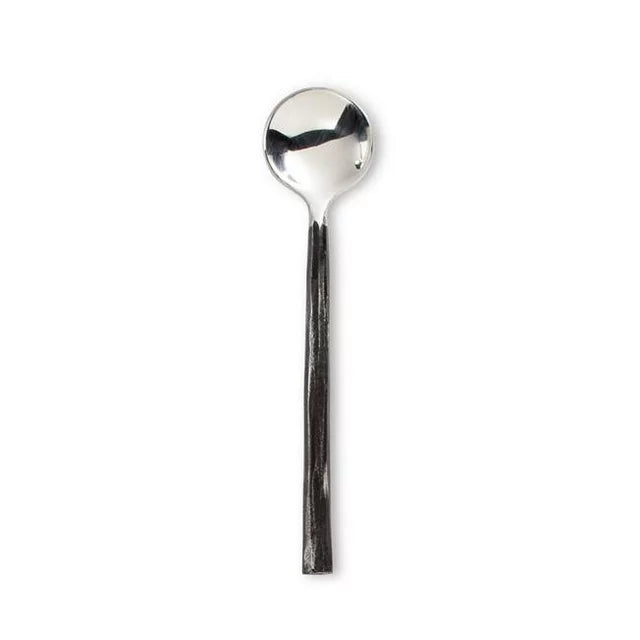 Transform your gatherings with our exceptional Forge-Finished Handle Spoon. Crafted from stainless steel, its one-of-a-kind antique-black forge-finished handle adds a touch of opulence to your table. Elevate every dinner party to a realm of sophistication and style with this elegant spoon as your centerpiece.