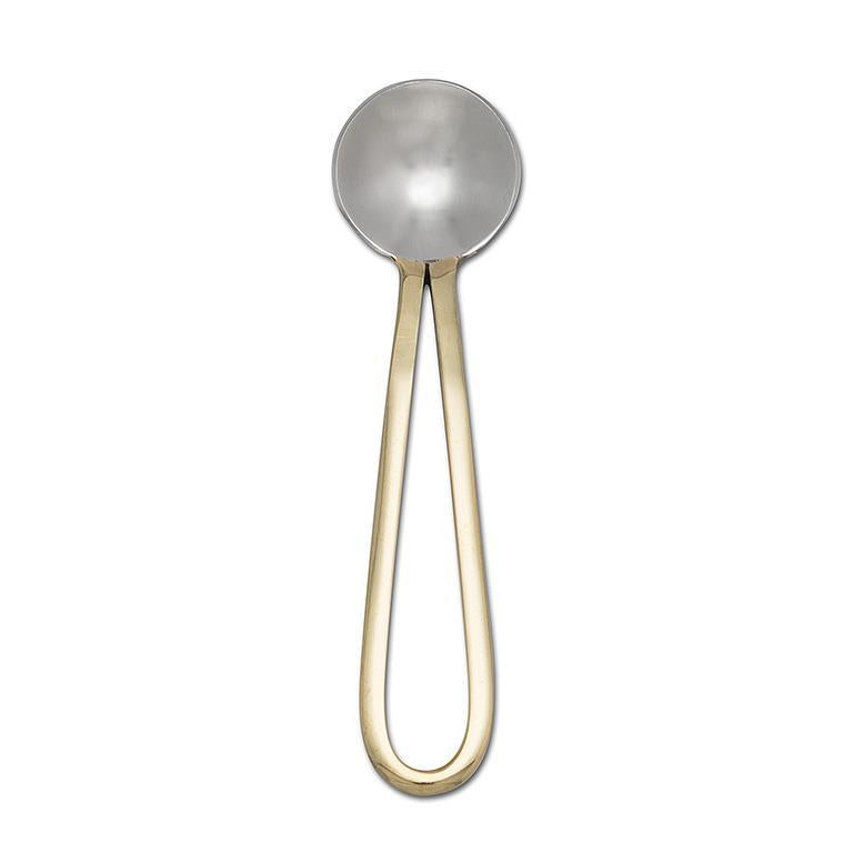 Infuse a dash of elegance into your tea and coffee rituals with our loop-handled small spoon. Meticulously crafted from a blend of brass and stainless steel, this serving spoon effortlessly marries form and function.