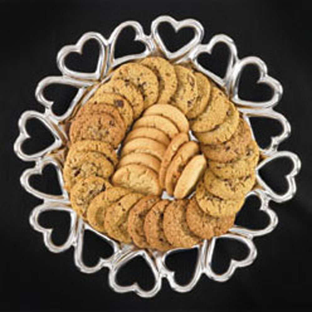 Shiny hearts create a joyful design perfect for celebrating an engagement, wedding, friendship or any kind of love! Handcrafted of food-safe polished aluminum. Size: 17” x 17” x 2.5”