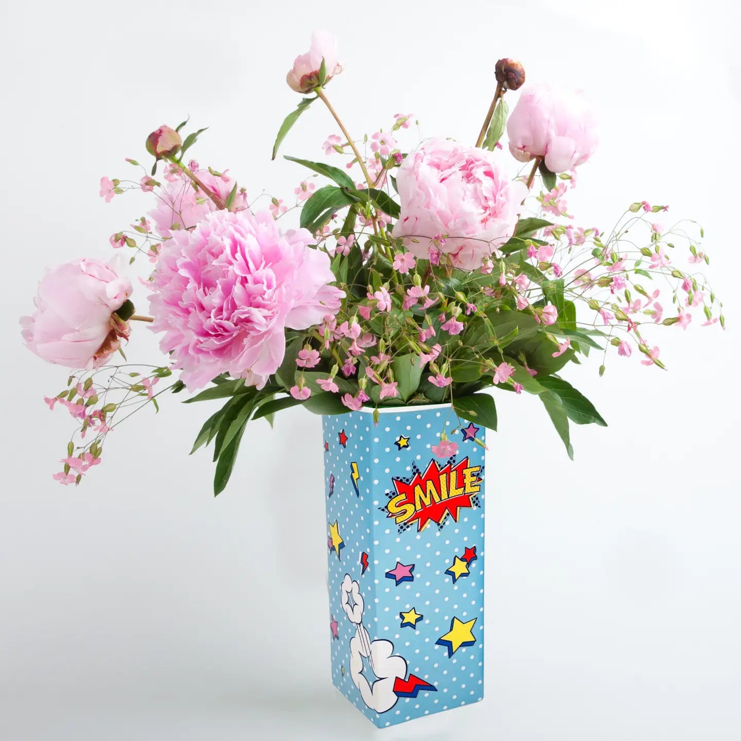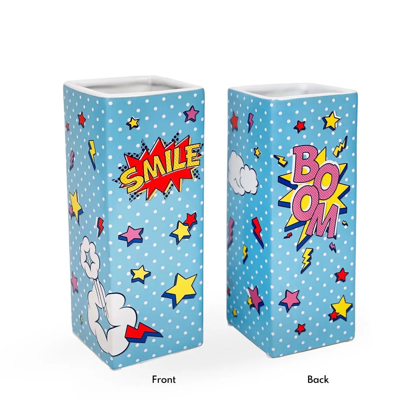 • Colorful, eye-catching flower vase for your eclectic home or office • Looks fabulous with a huge bouquet or without a single flower in it. • Perfect gift for pop art and classic comic books lovers Styles: OMG, Smile Made from: Ceramic Measures: 5.5″ L x 9.5″ H