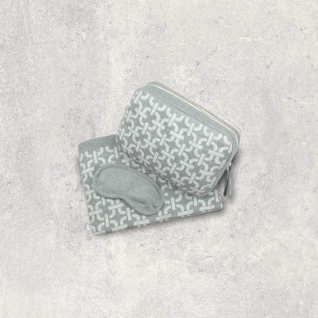 A beautiful chain of events can be seen inside this luxe link pattern. Reminiscent of a high-end handbag, the elegant graphic chains elevate our easy-to-carry blanket and sleep mask set. Take it on your next flight for a soft safe nap wrap or pop it in your bag for a weekend with friends. Great gift for guys or girls.