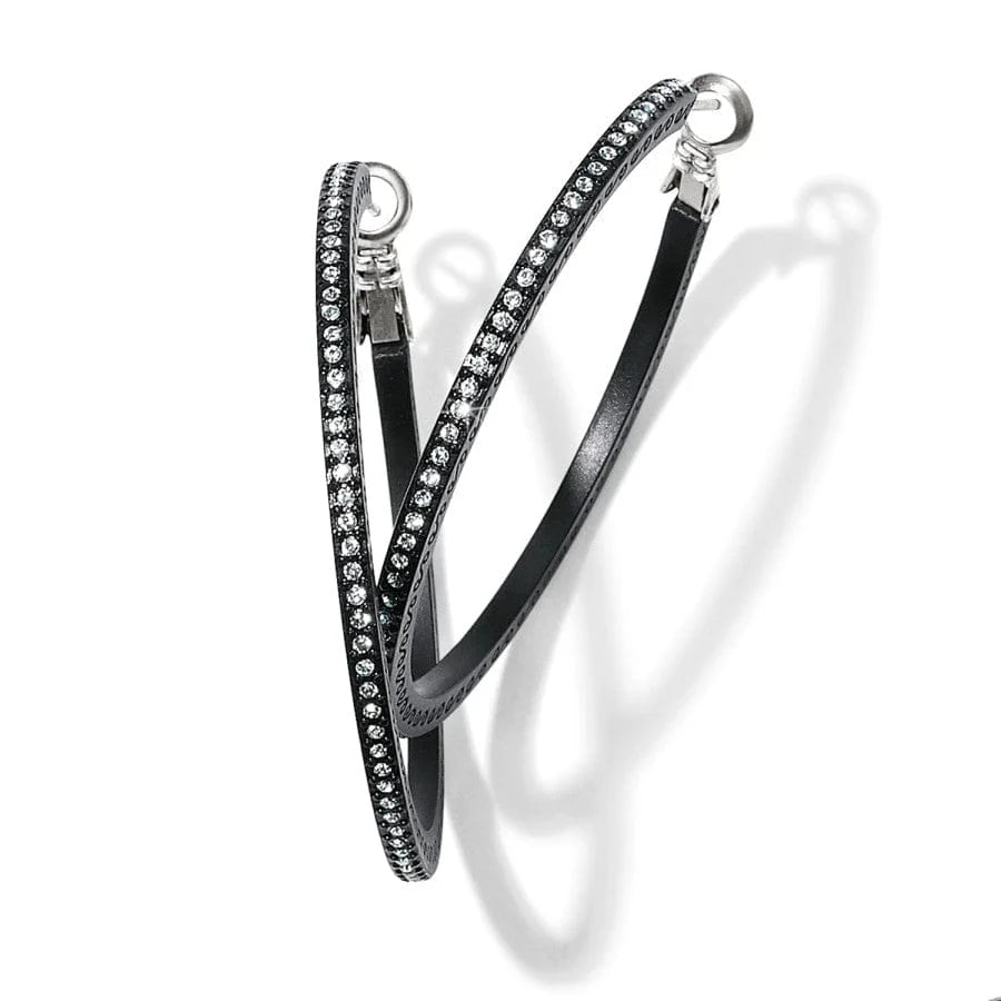 Fine crystal pave details sparkle against these chic black statement hoop earrings that transition effortlessly from day to night.