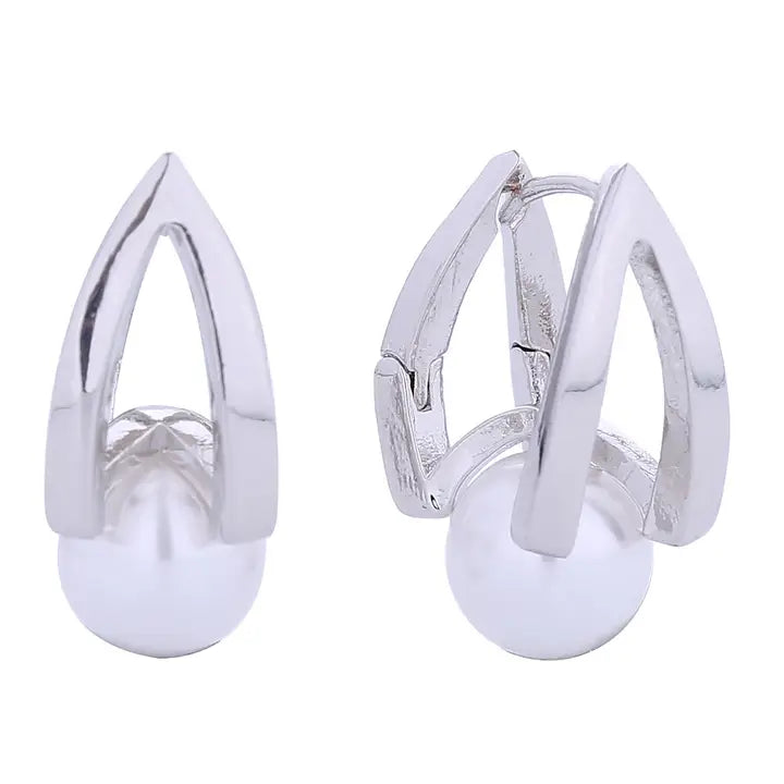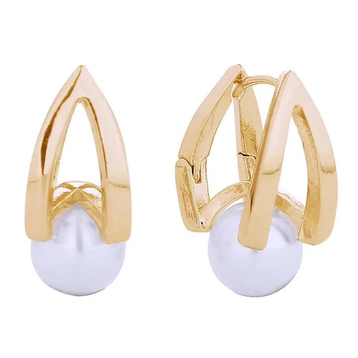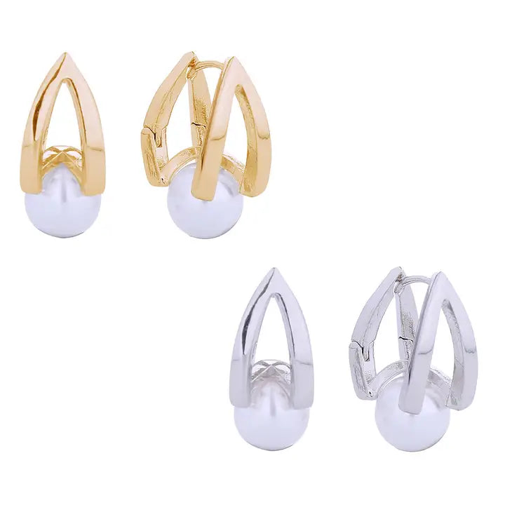 Elegant, hypoallergenic, and made to shine! These 14K gold-dipped pearl huggie earrings —available in gold or silver for effortless sparkle!