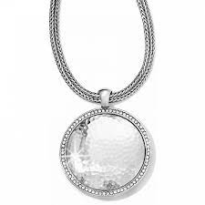 Closure: Lobster Claw - Length: 17" - 34" Adjustable - Features: Convertible - Pendant Drop: 2" Finish: Silver plated, Hammered