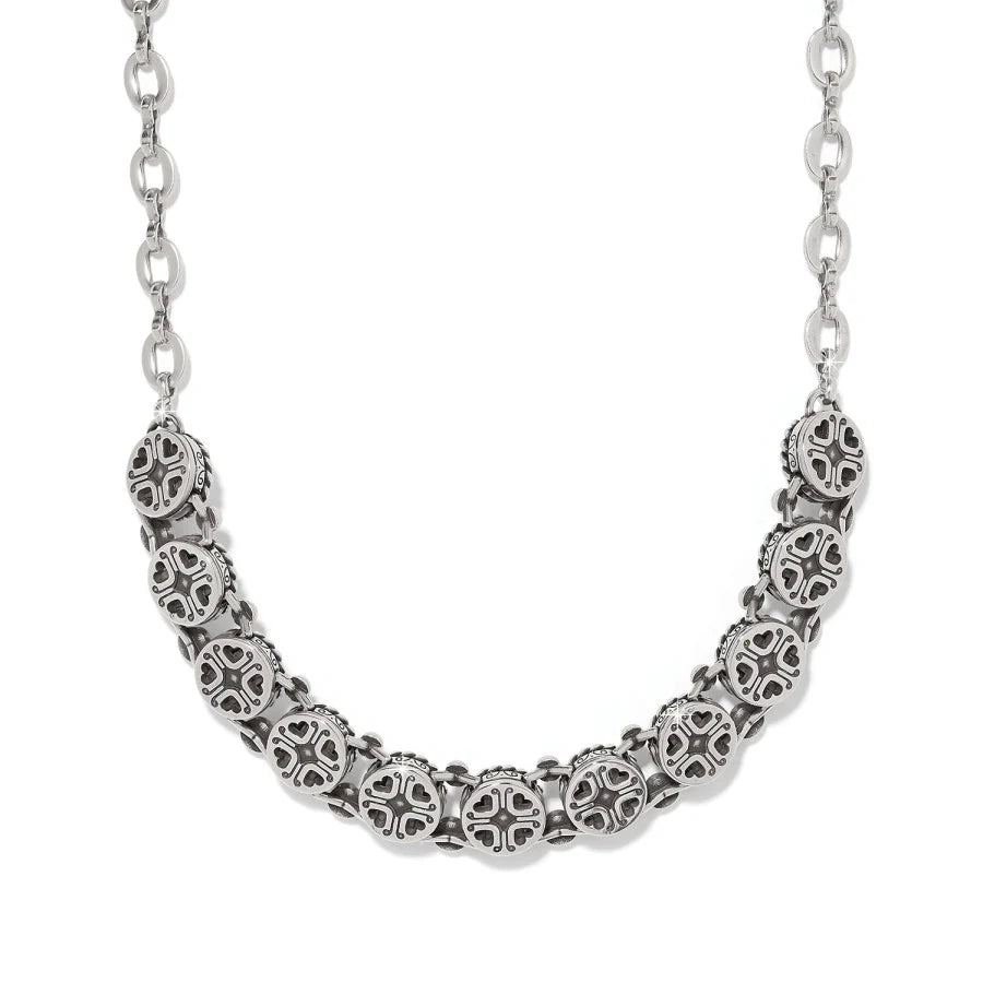Inspired by the riches of the sea, this gleaming collar necklace features eleven glass pearl medallions, each set off by pairs of fine quality crystals and nautical rope frames. Only for true treasure hunters.