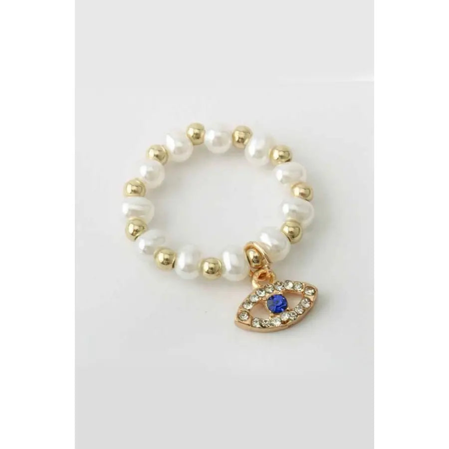 Rhinestone Eye Pearl Ring Material: 60% Plastic, 20% Metal, 20% Glass