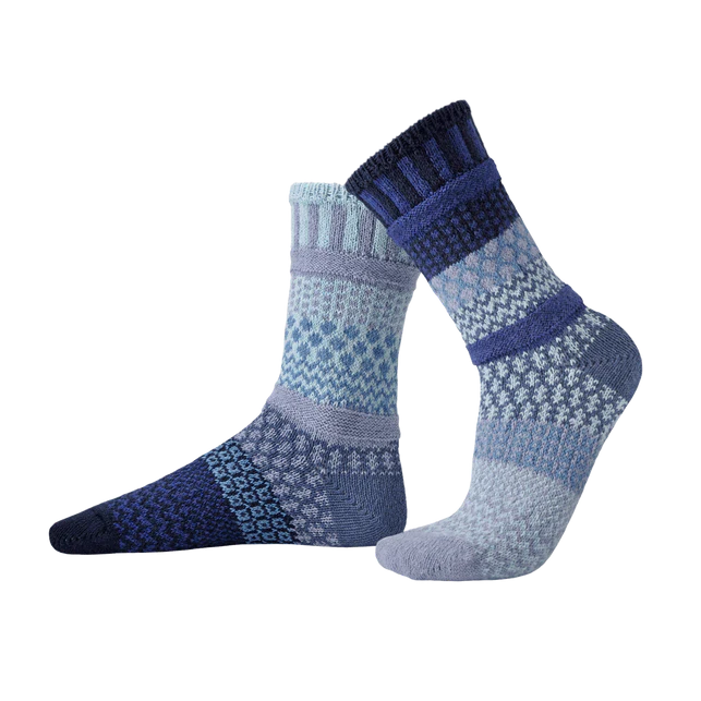 Like the dazzling reflection of the sky in water, our Horizon Crew Socks perfectly mirror one another. The shades of blue in this sock imitate those found in the sky throughout the day and year, whether it’s clear and bright or overcast and grey.